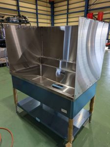 大型の機械カバーの製作をしました。ステンレスヘアライン加工